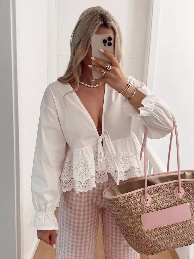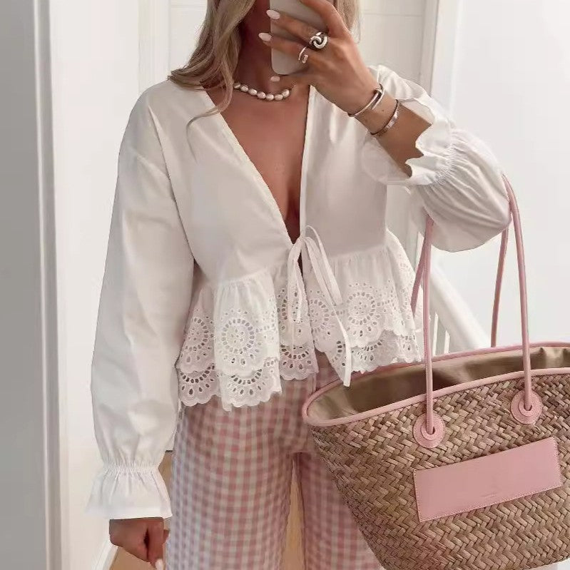 Deep V-neck Long Sleeve Shirt Top